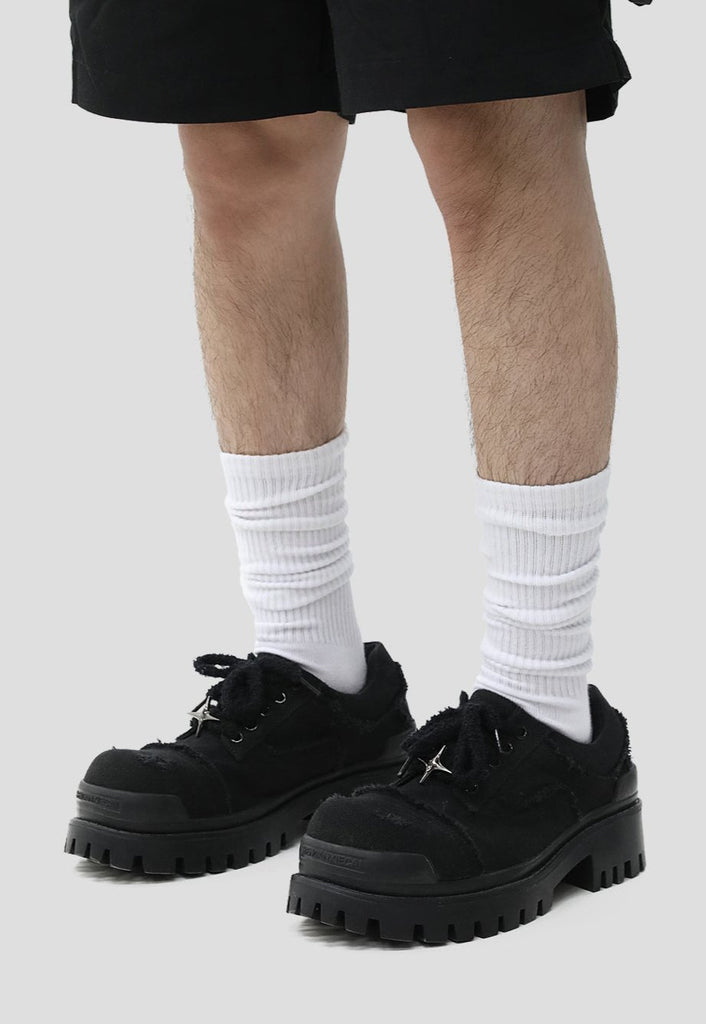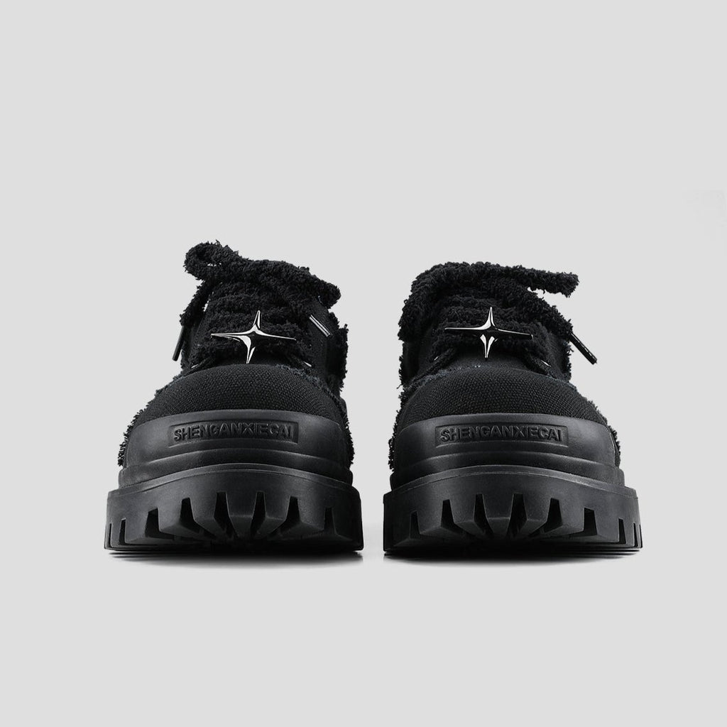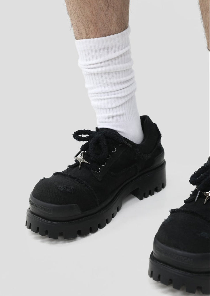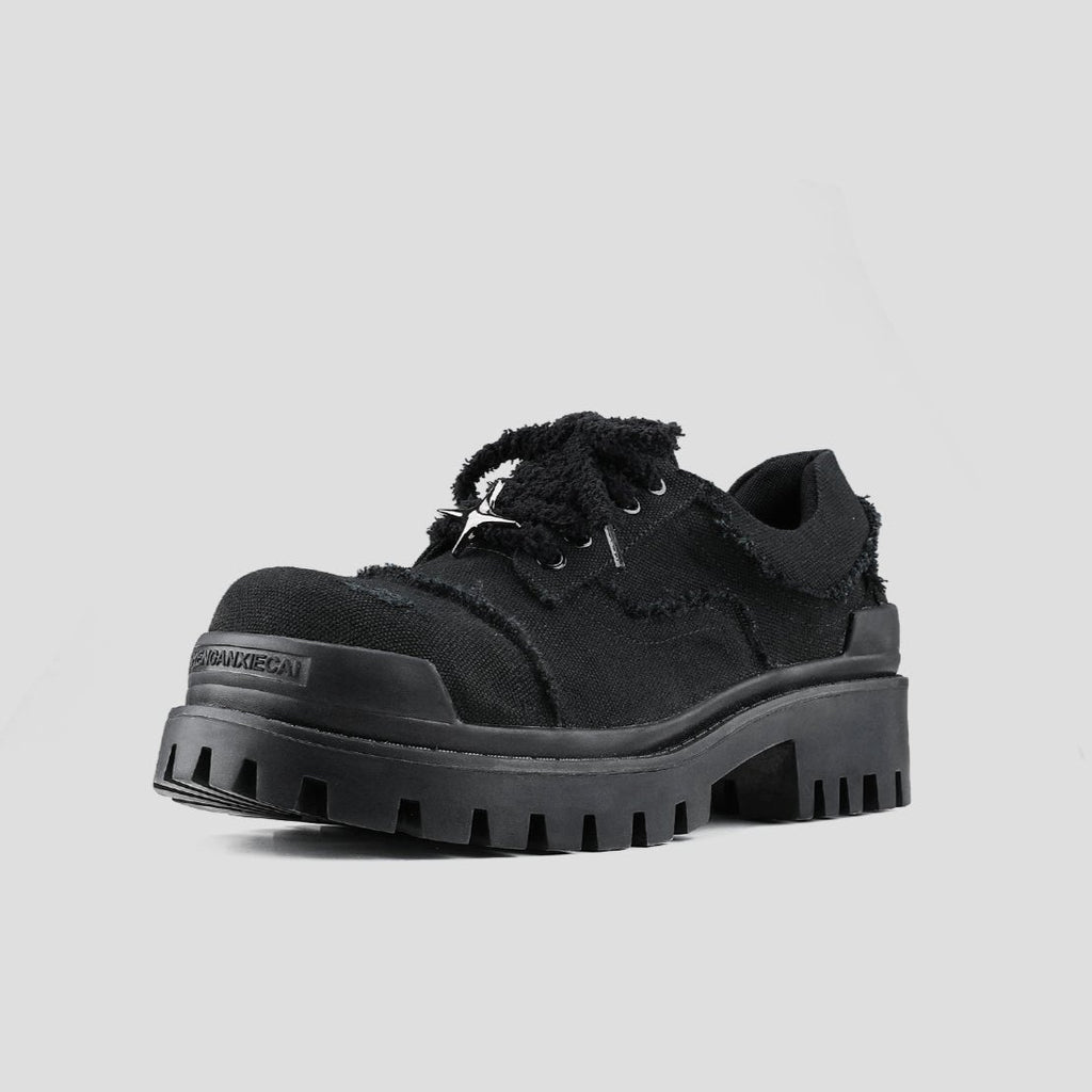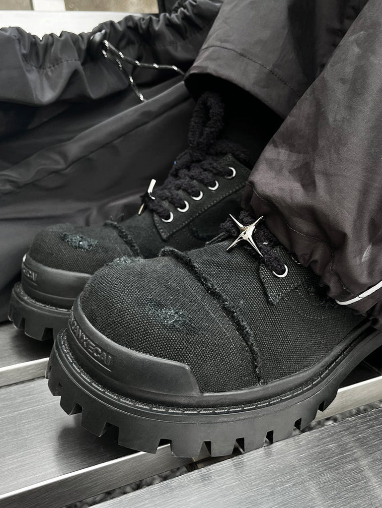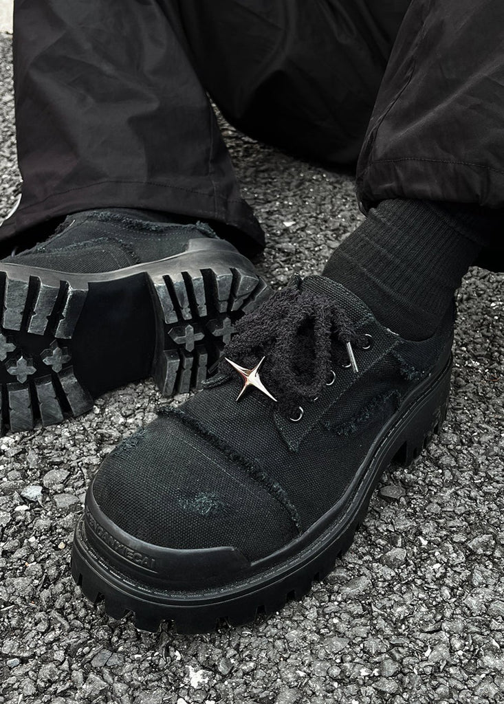 Four-pointed Star Hand-destroyed Denim Platform Derby Shoes