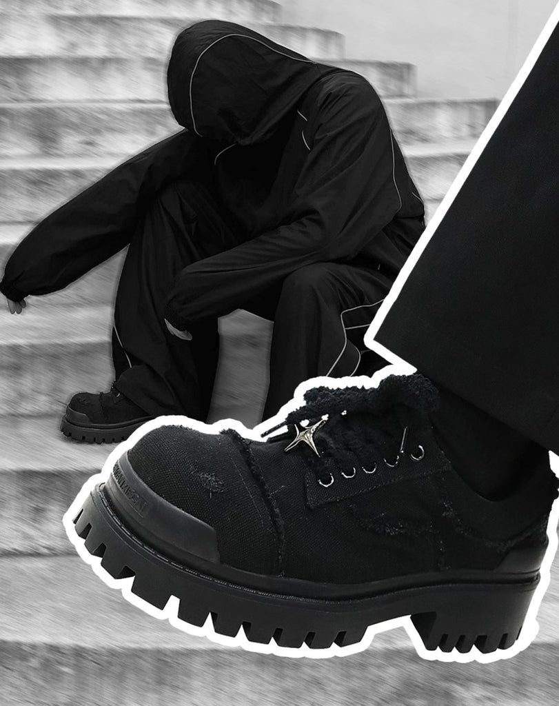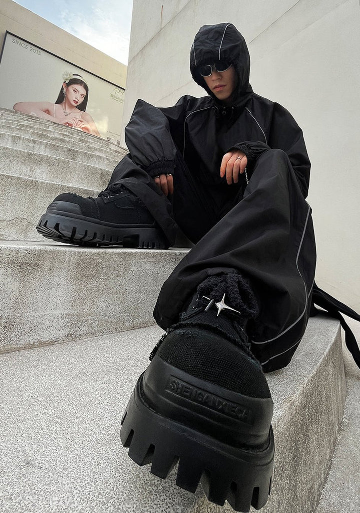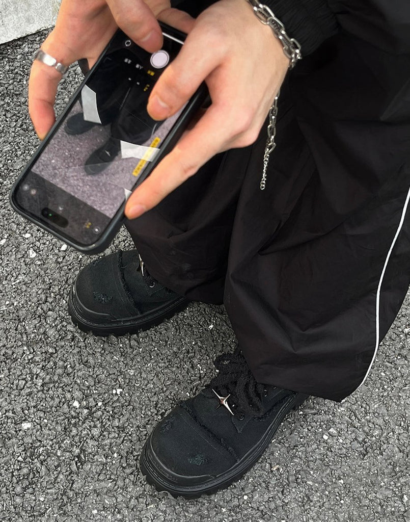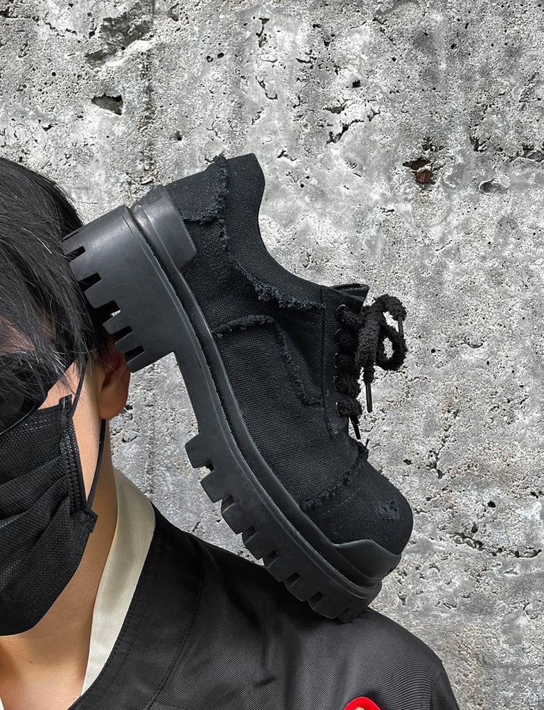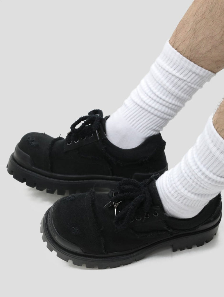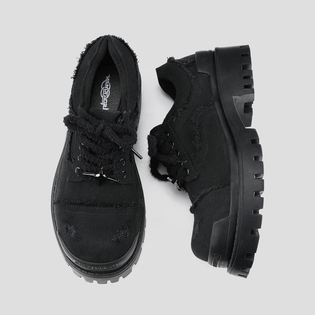 Four-pointed Star Hand-destroyed Denim Platform Derby Shoes