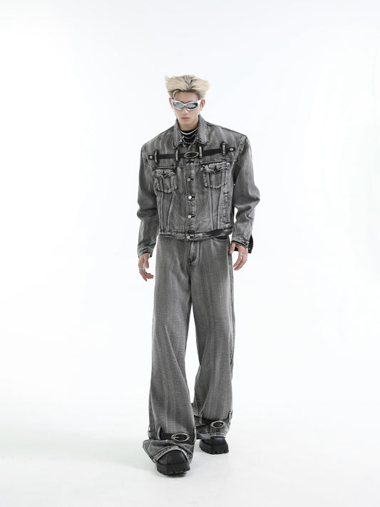 【24s Aug.】Heavy Distressed Belt-decorated Denim Suit