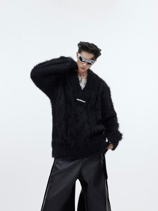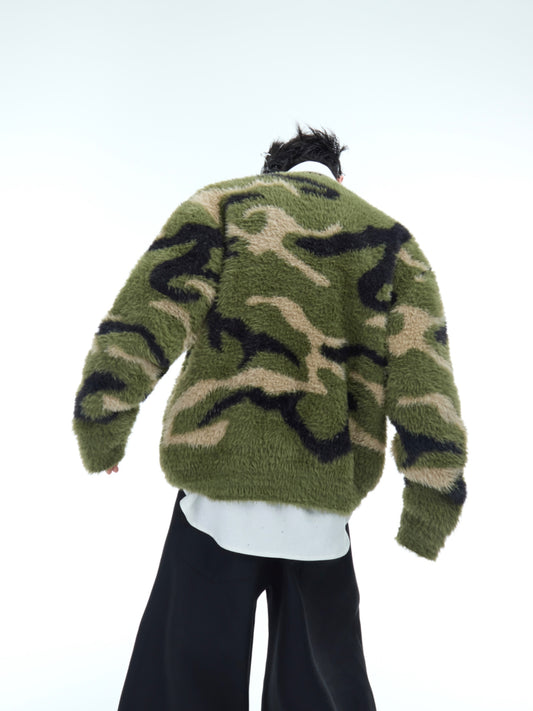 【24s Dec.】Faux Mink Diamond Camouflage Cardigan Sweater