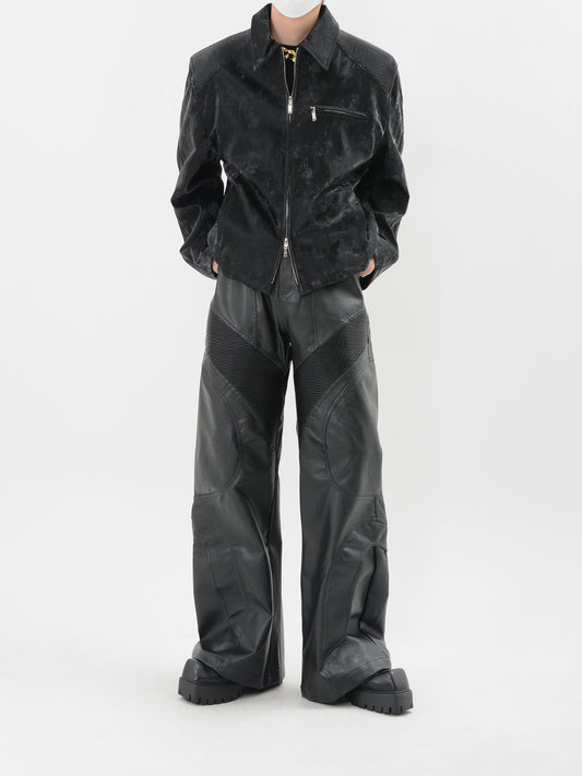 【24s Oct.】Pleated Tightening Shoulder Pads Design Sense Biker Jacket