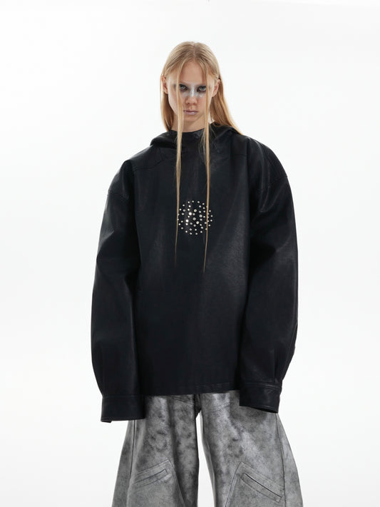 【24s Oct.】Metal Rivet Punk PU Leather Hoodie