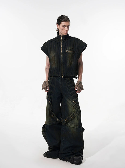 【25s Sep.】Street Style Short Stand Collar Denim Vest/jeans
