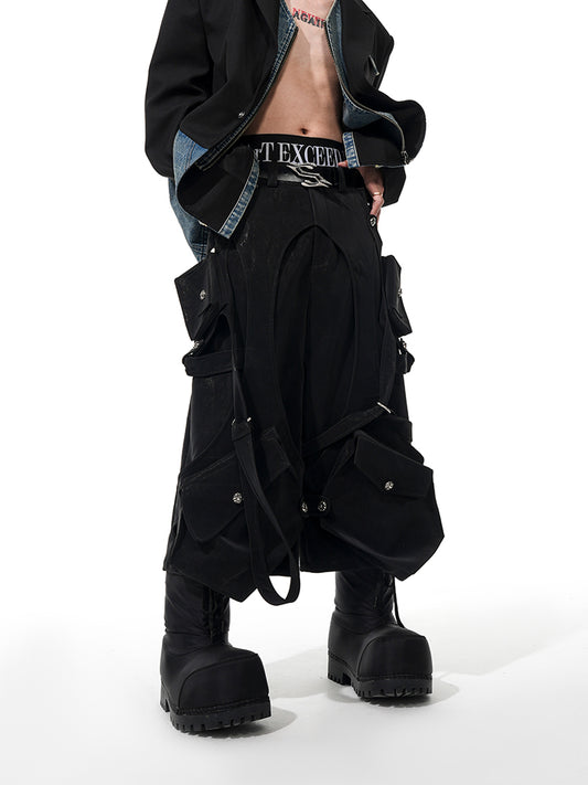 【25s Apr.】Deconstructed Loose Hollow Multi-Pocket Cropped Pants