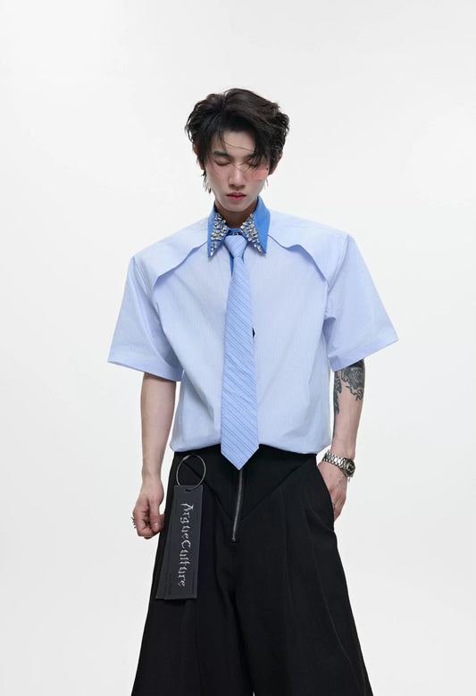 【25s Jul.】Two-tone Diamond-stitched Striped Shirt