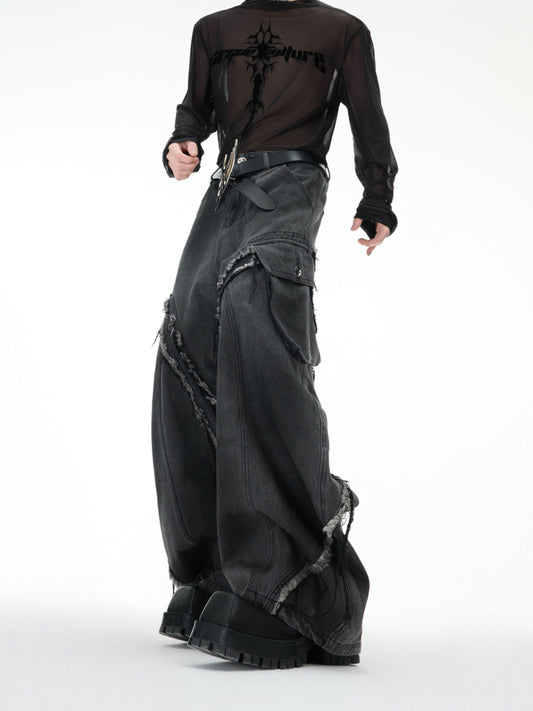 【25s Feb.】Retro Fringed Curved Knife Shaped Loose Jeans