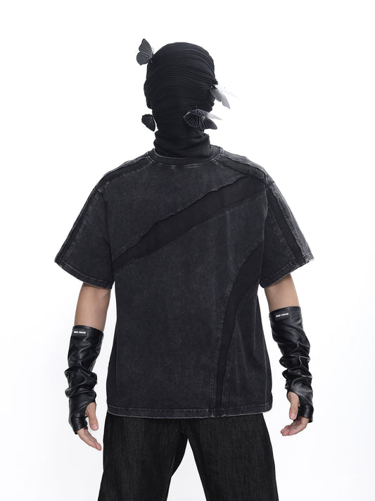【25s Jul.】Cut-Out Spliced Washed Round Neck Short Sleeve T-Shirt