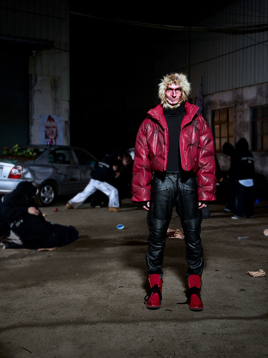 【25s Nov.】Spray-painted Pleated PU Leather Cotton Coat