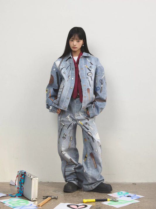 【25s Jul.】Bird Digital Print Detachable Jeans