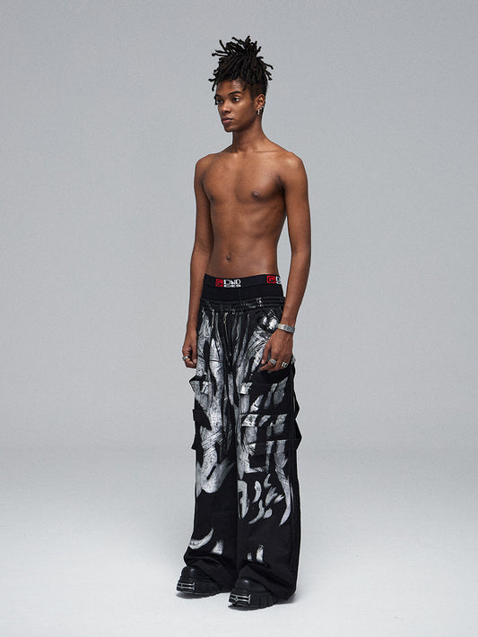 【25s Jun.】Vintage Washed Distressed Colorblock Thorn Print Jeans