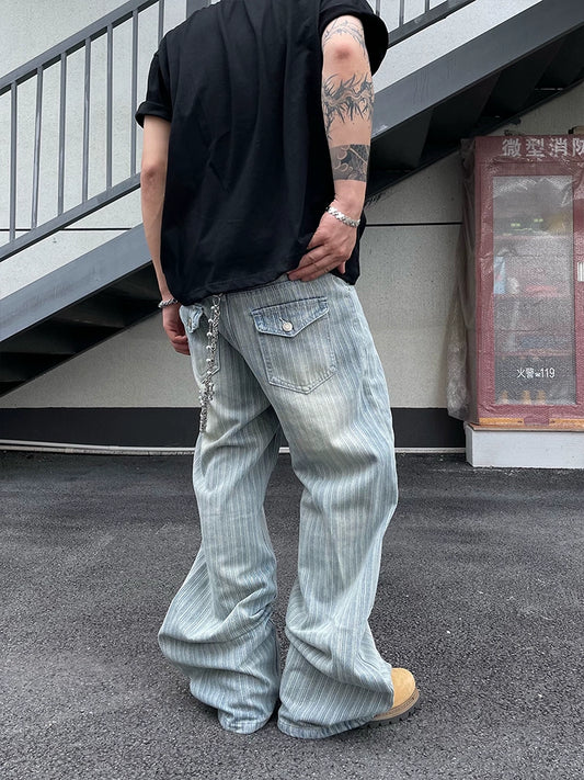 【25s Jun.】Vintage Vertical Stripe Distressed Jeans