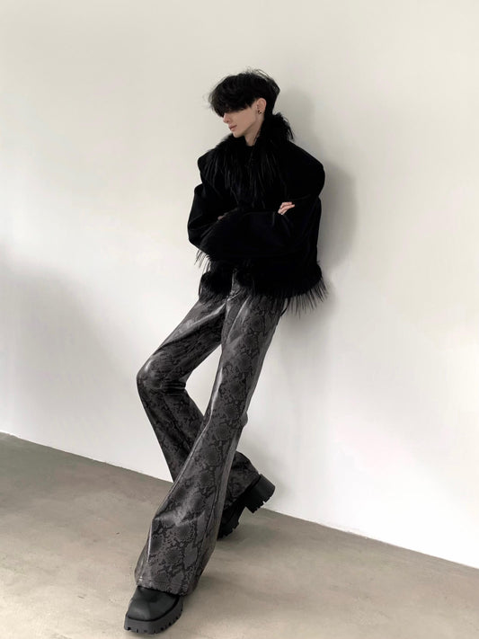 【25s Apr.】Retro High Waist Snakeskin Pattern Flared Leather Pants