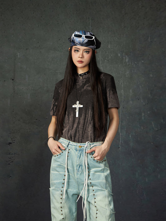 【25s Mar.】High Street Distressed Printed Elastic T-Shirt