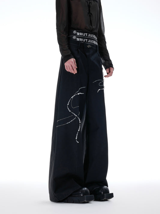 【25s Feb.】Beaded Snake Loose High-end Wide-leg Pants