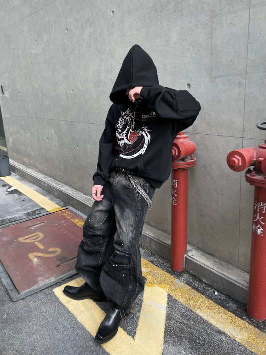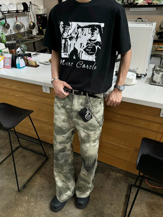 【25s Mar.】Wasteland Style Ink Splash Pleated Loose Jeans