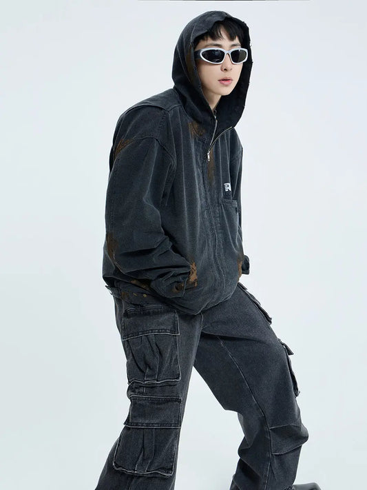 【23s September.】Vintage Distressed Hooded Denim Jacket