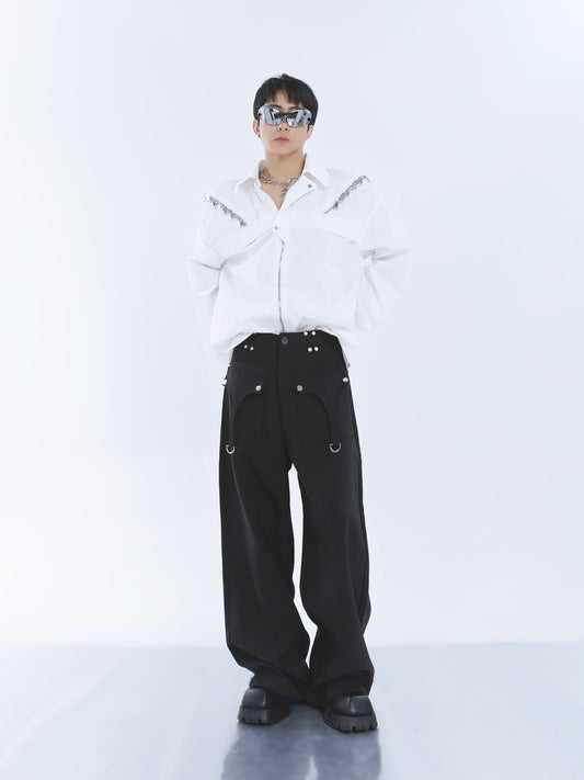 【23s September.】Shoulder Metal Double Zpper Design Shirt + Pants
