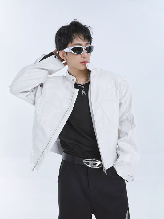【23s September.】Metal Rivet-embellished Silhouette Leather Jacket
