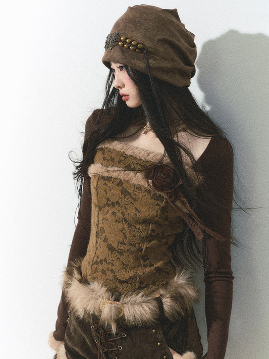 【25s Jun.】Leopard Lace Contrast Strap Cami Top