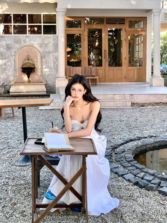 【25s Apr.】Lace Design Tube Top Waist Long Dress