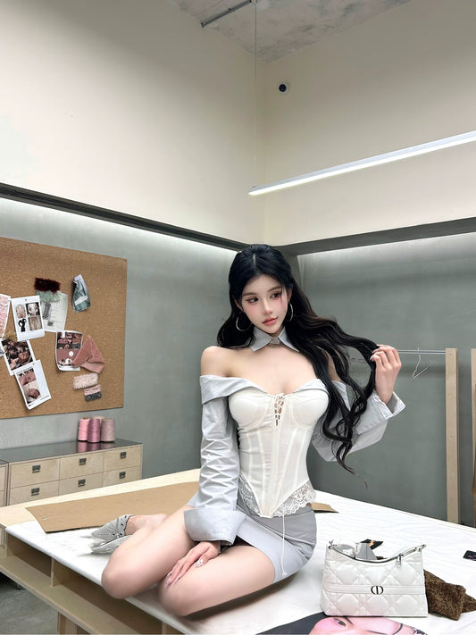 【25s Jul.】Hot Girl Bandeau Fishbone Top/ Hip Skirt