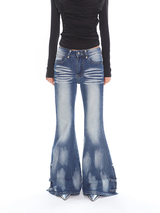 【25s Mar.】Washed Distressed Low-Rise Skinny Flare Jeans