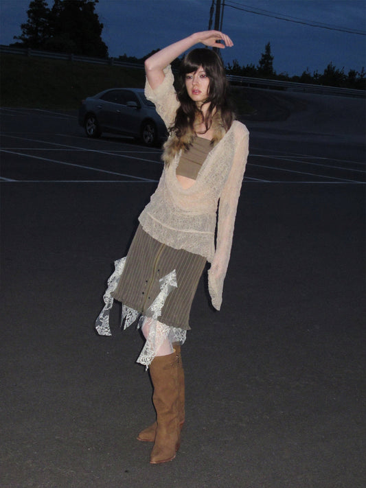 【25s Mar.】Hot Girl Lace Belt Buckle Stitching Long Sleeves