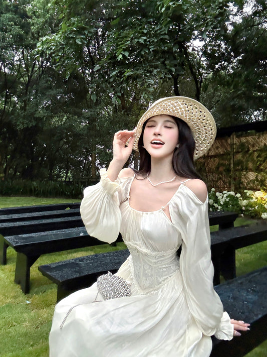 【25s Aug.】Lace Panel Corset-Style Midi Dress
