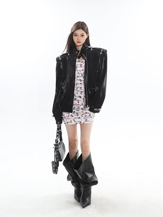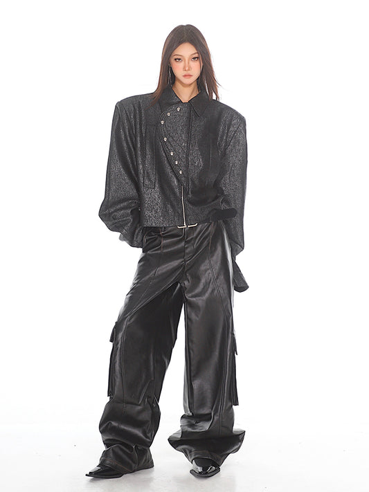 【24s Oct.】Luxurious Glossy Textured Short Jacket