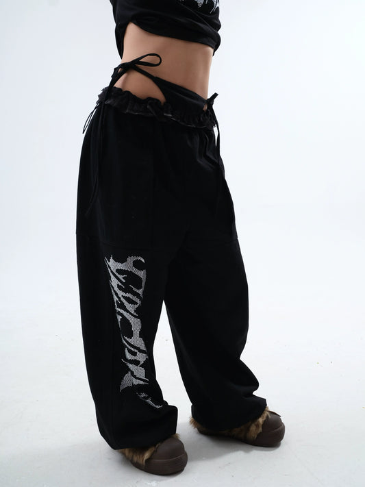 【25s Jul.】Mock Two-piece Lace Ruffled Patchwork Pants