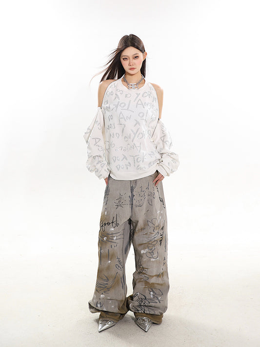 【24s February.】Hand Drawn Graffiti Baggy Jeans