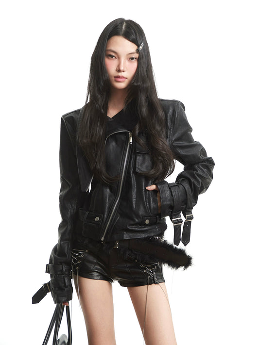 【25s Oct.】Functional Punk High Street Slim Leather Jacket