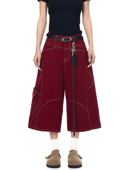 【25s Jul.】Vintage Deconstructed Topstitched Multi-pocket Short Jeans