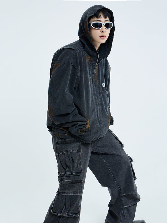 【23s September.】Workwear Retro Patchwork Design Stand Collar Jacket -L