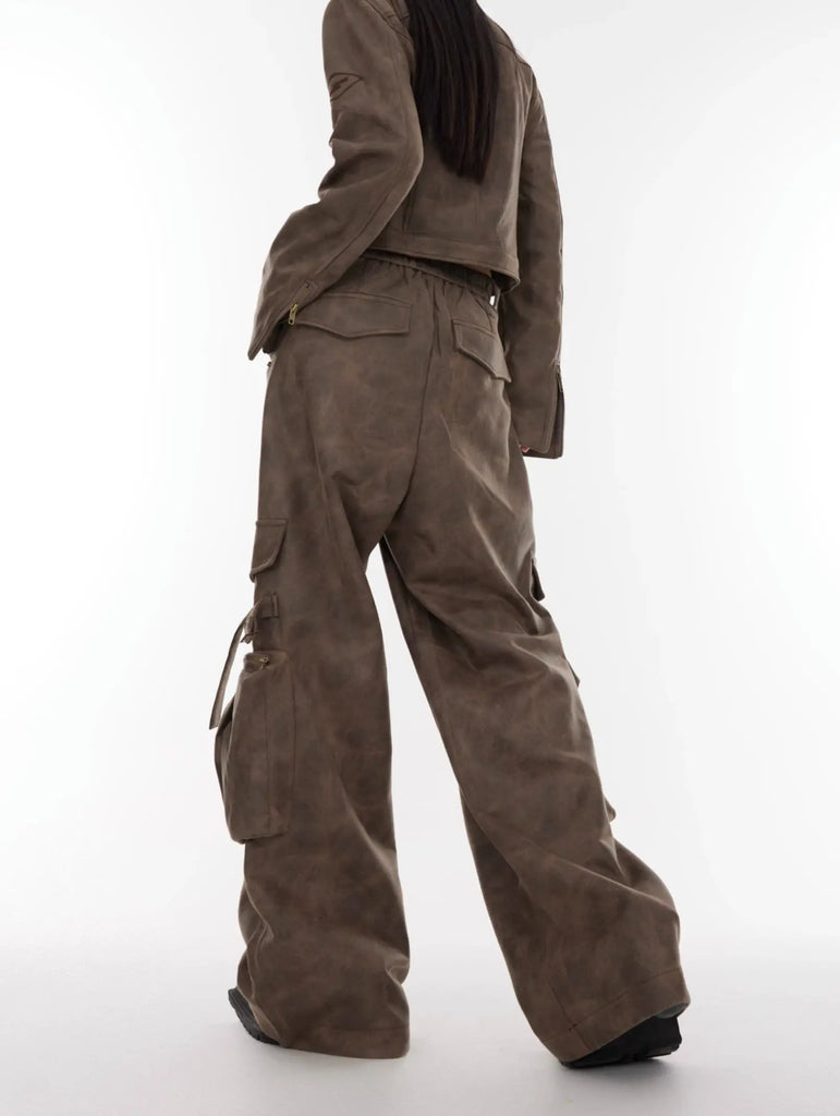 【23s August.】Large Pocket Cargo PU Leather Pants