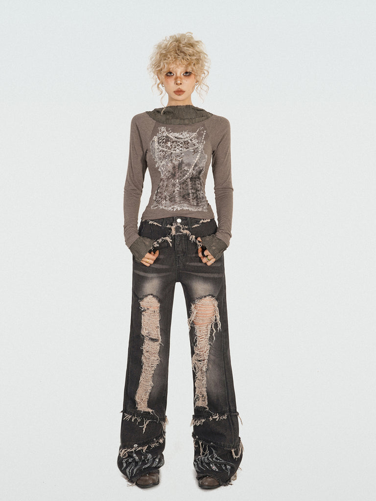 【24s Nov.】Wasteland Style Ripped Fringe Jeans
