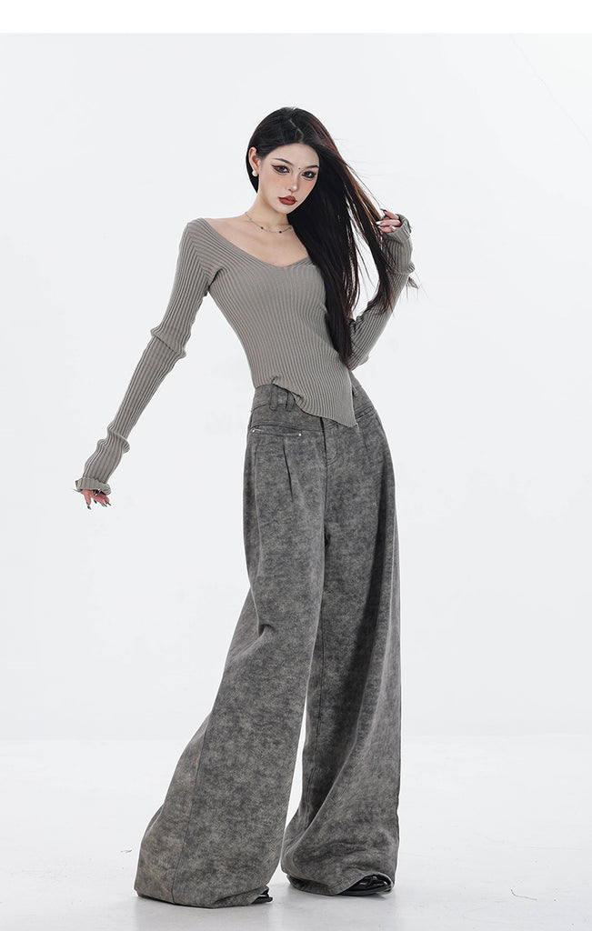 【24s Sep.】High Waist Grey Wide Leg Jeans