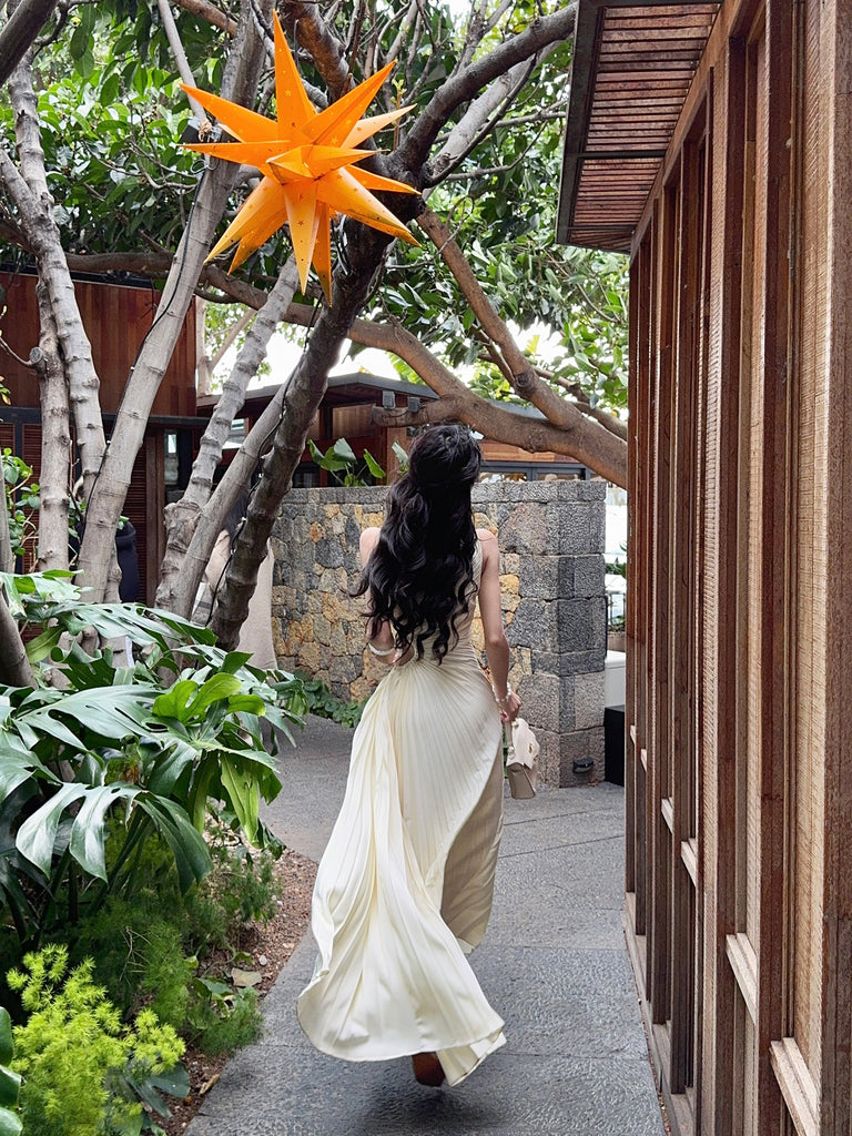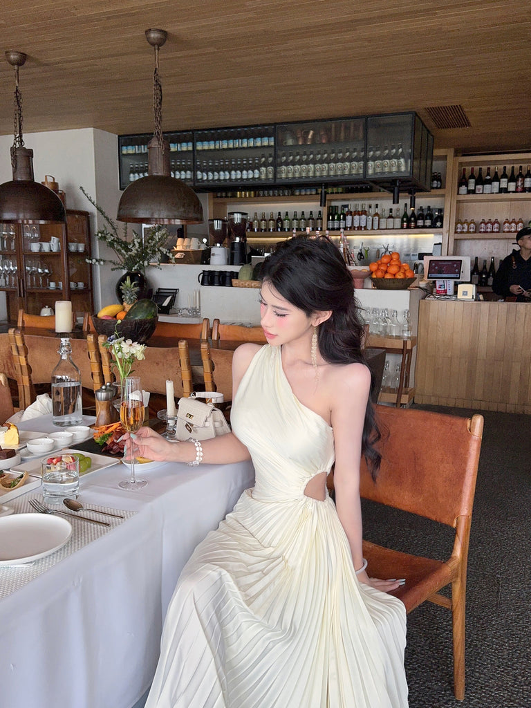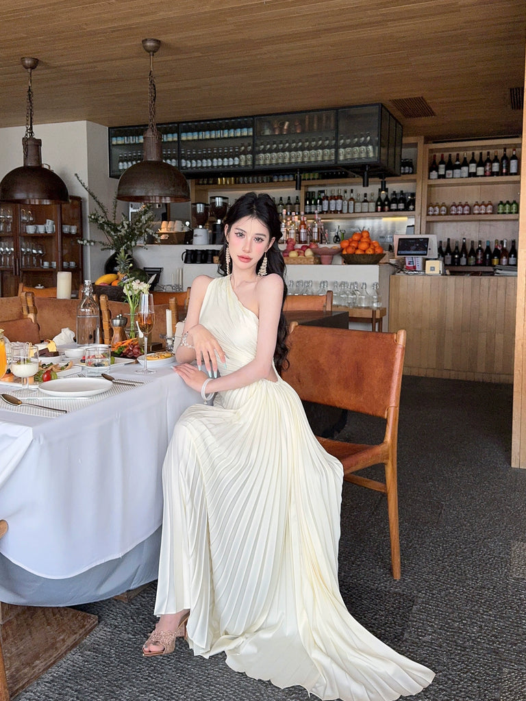 【25s Apr.】Off-shoulder waisted satin maxi skirt