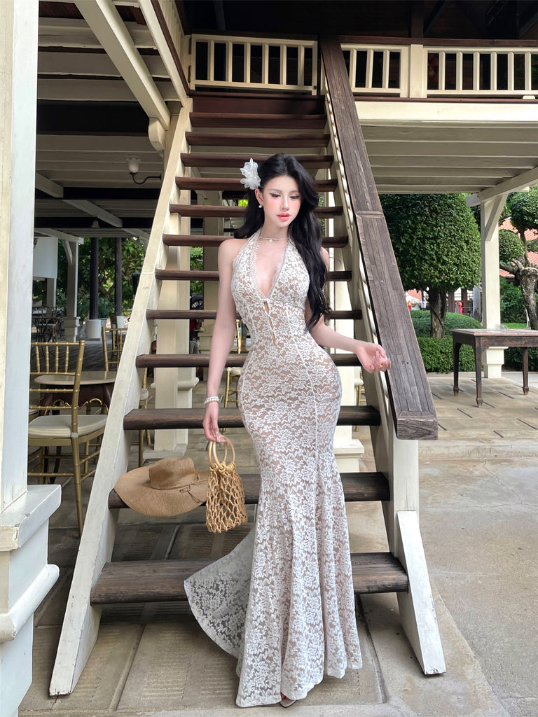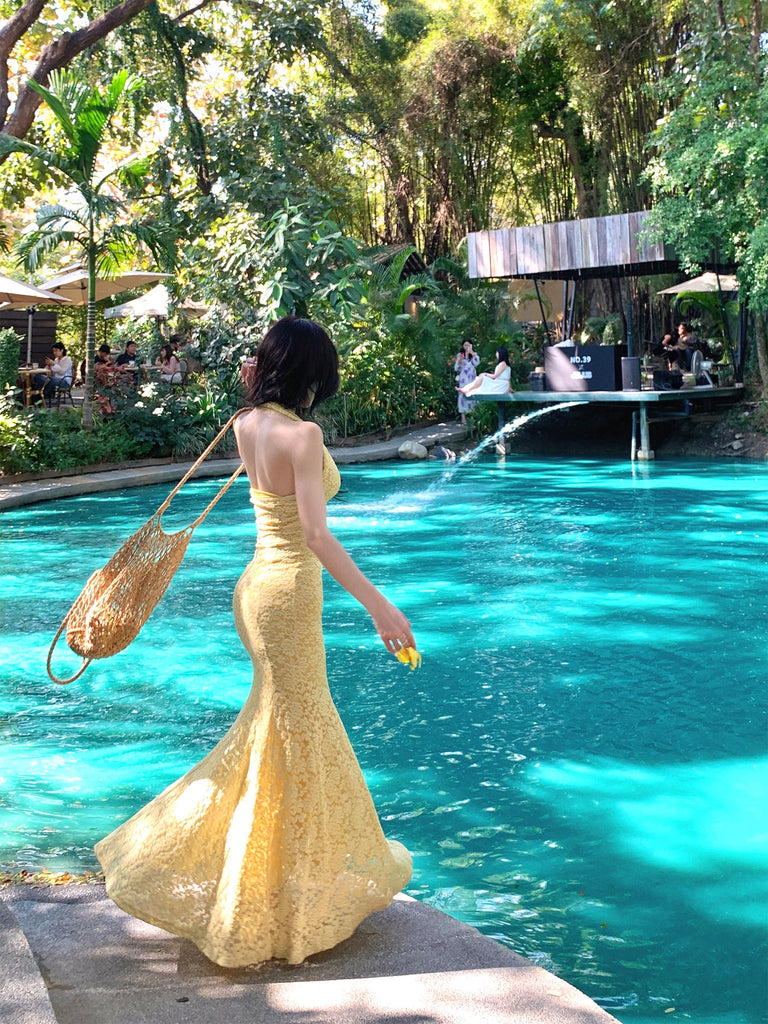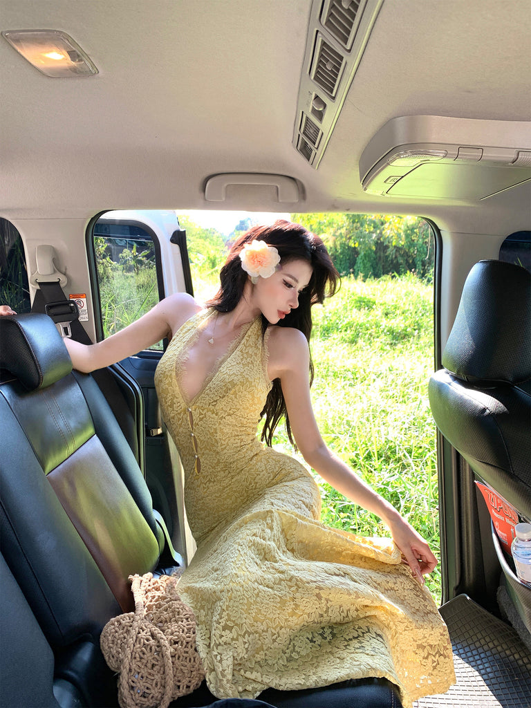 【25s Mar.】French V-Neck Backless Vacation Dress