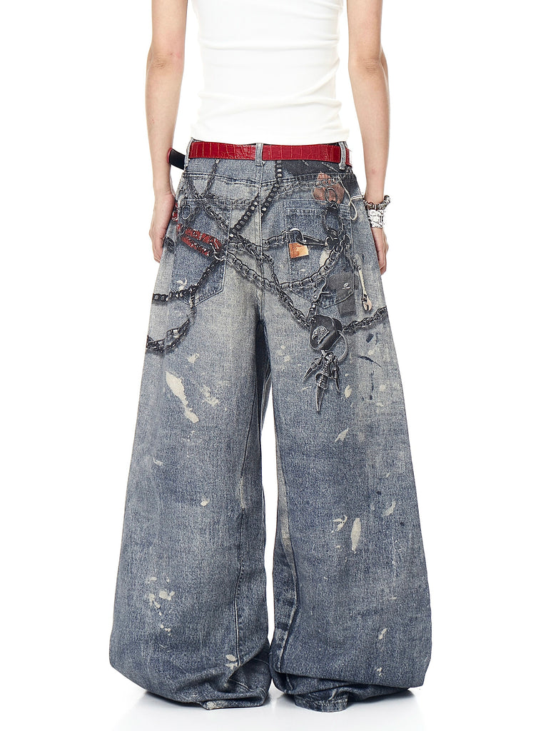 【25s Jul.】American High Street 3D Chain Print Jeans