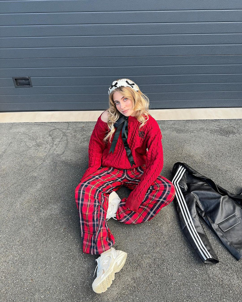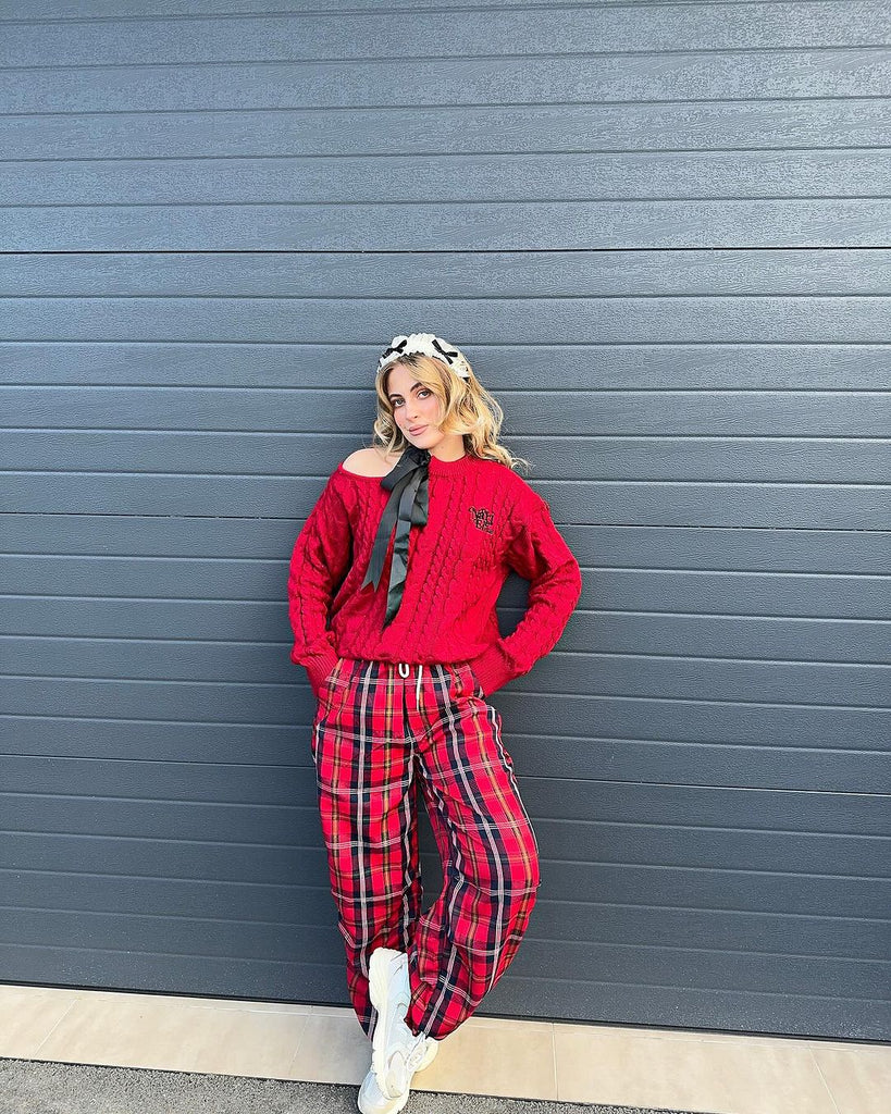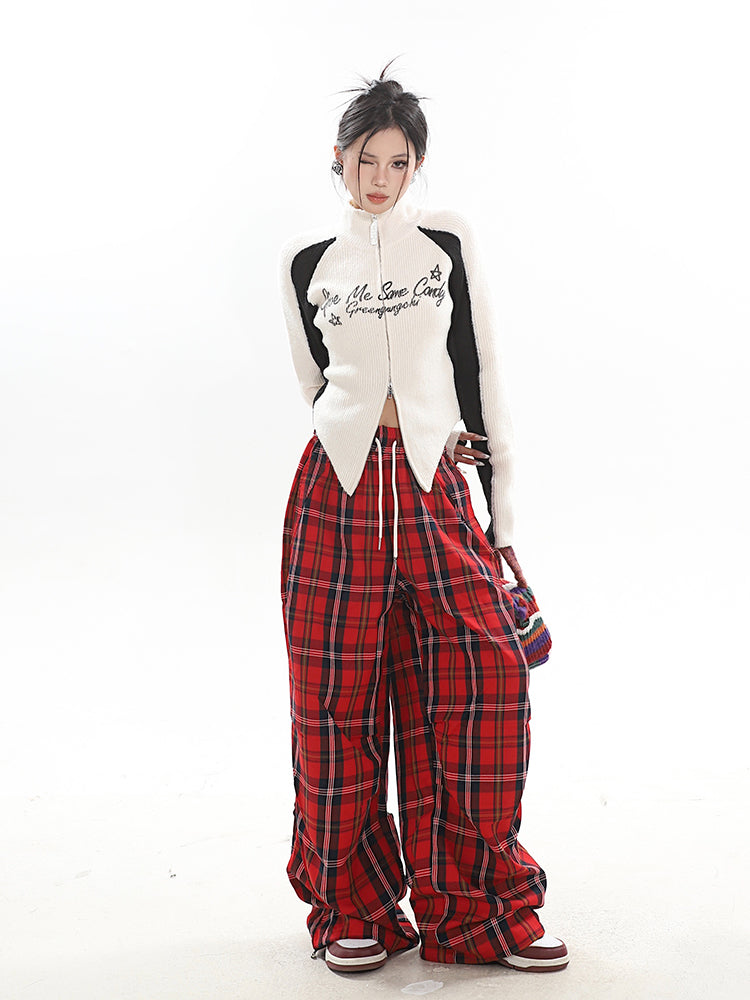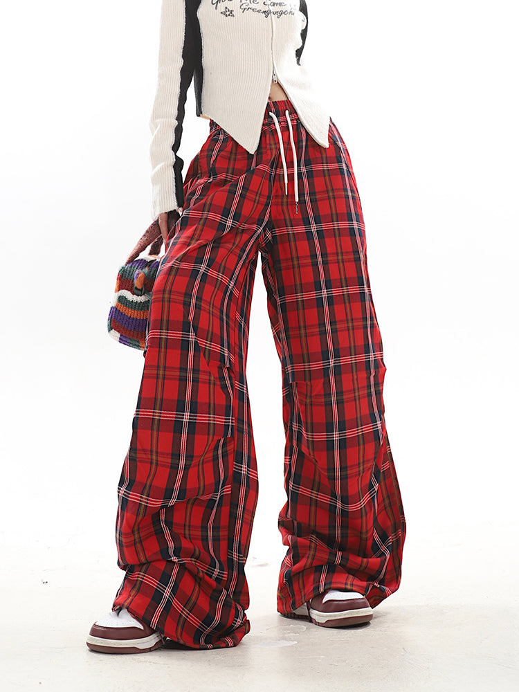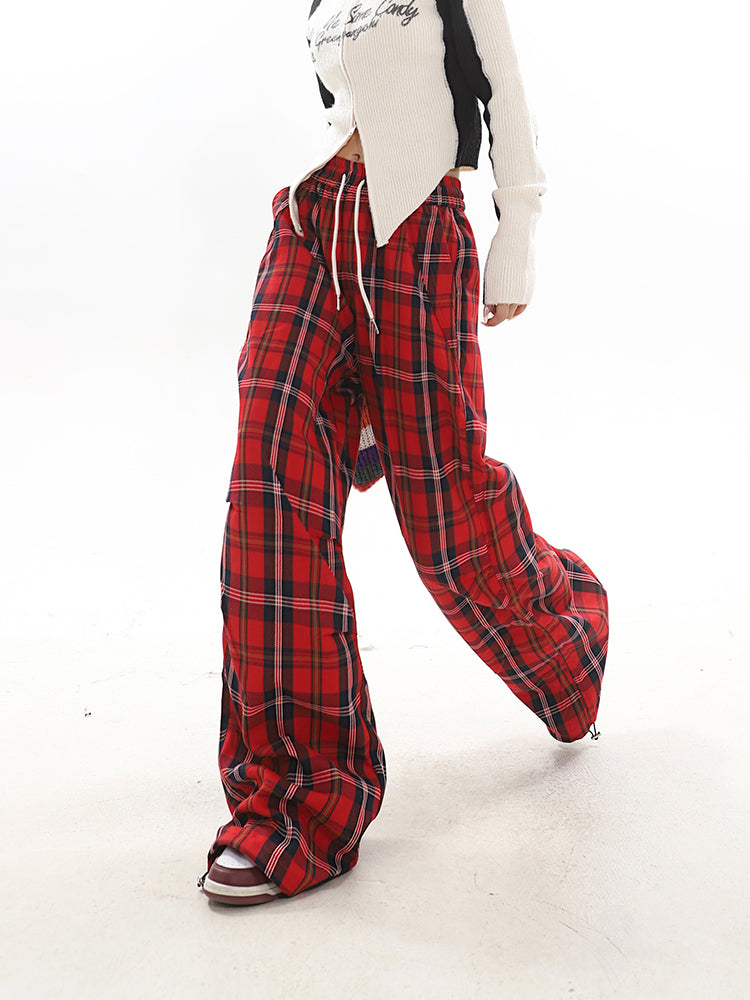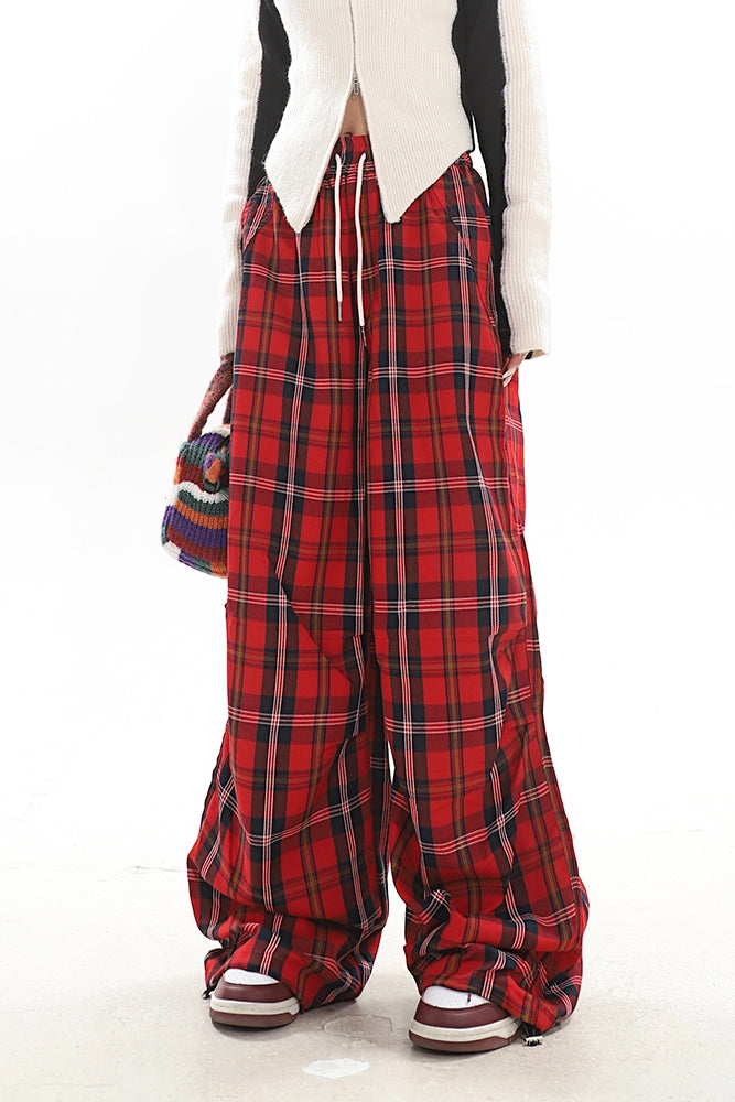 【23s December.】Christmas Red Plaid Casual Drawstring Sweatpants