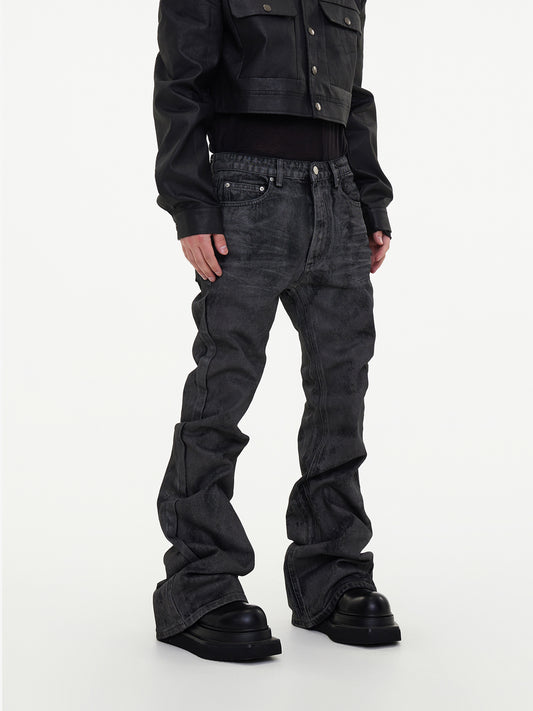【24s May.】Hand-brushed Wax-coated Slim-fit Stacked Jeans