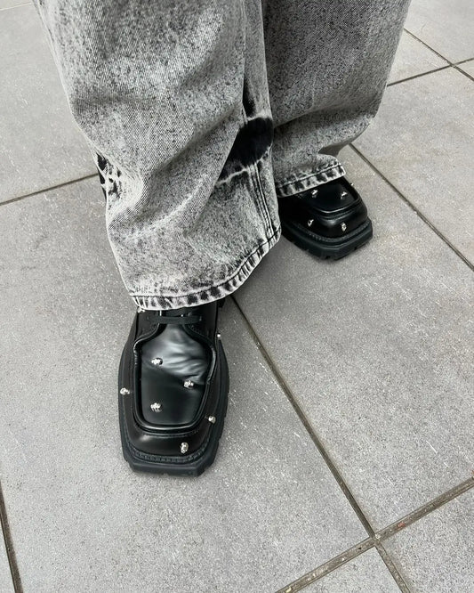 Skull Embellished Leather Shoes