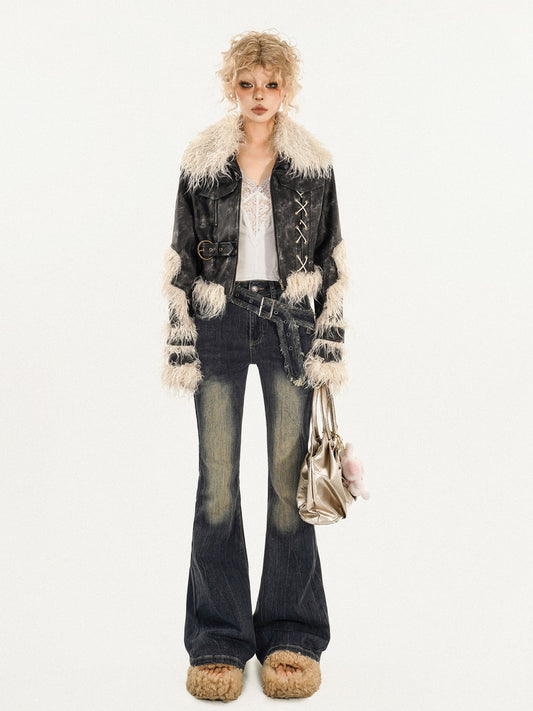 【25s Jan.】Vintage American Plush Patchwork Leather Jacket