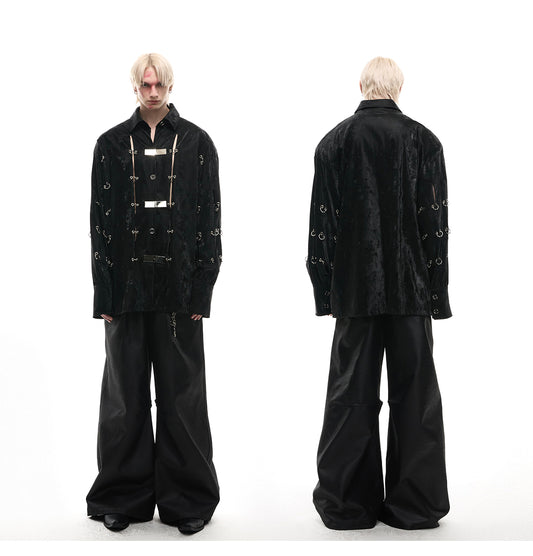 【25s Apr.】Hollow Out PU Leather Metal Clasp Jacket