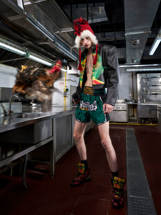 【25s Oct.】Portrait Print Cropped Leather Jacket