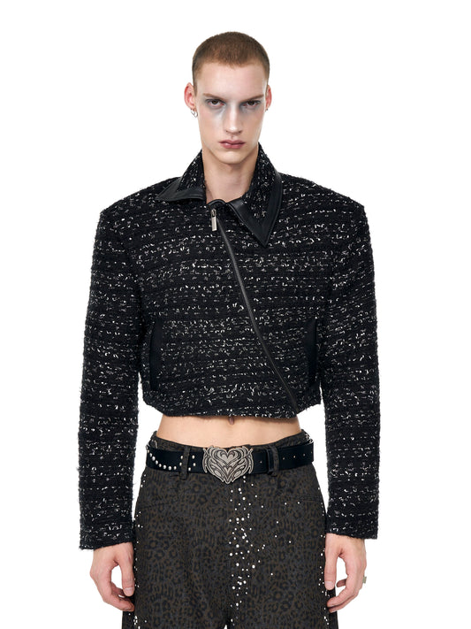 【25s Aug.】Embroidered Cropped Leather Jacket