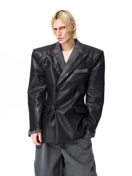 【25s Nov.】Textured PU Leather Suit JacketRegular price $135.99 USDRegular priceUnit price per-
