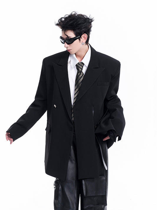 【24s Oct.】Deconstructed Blazer-collar Leather Biker Jacket