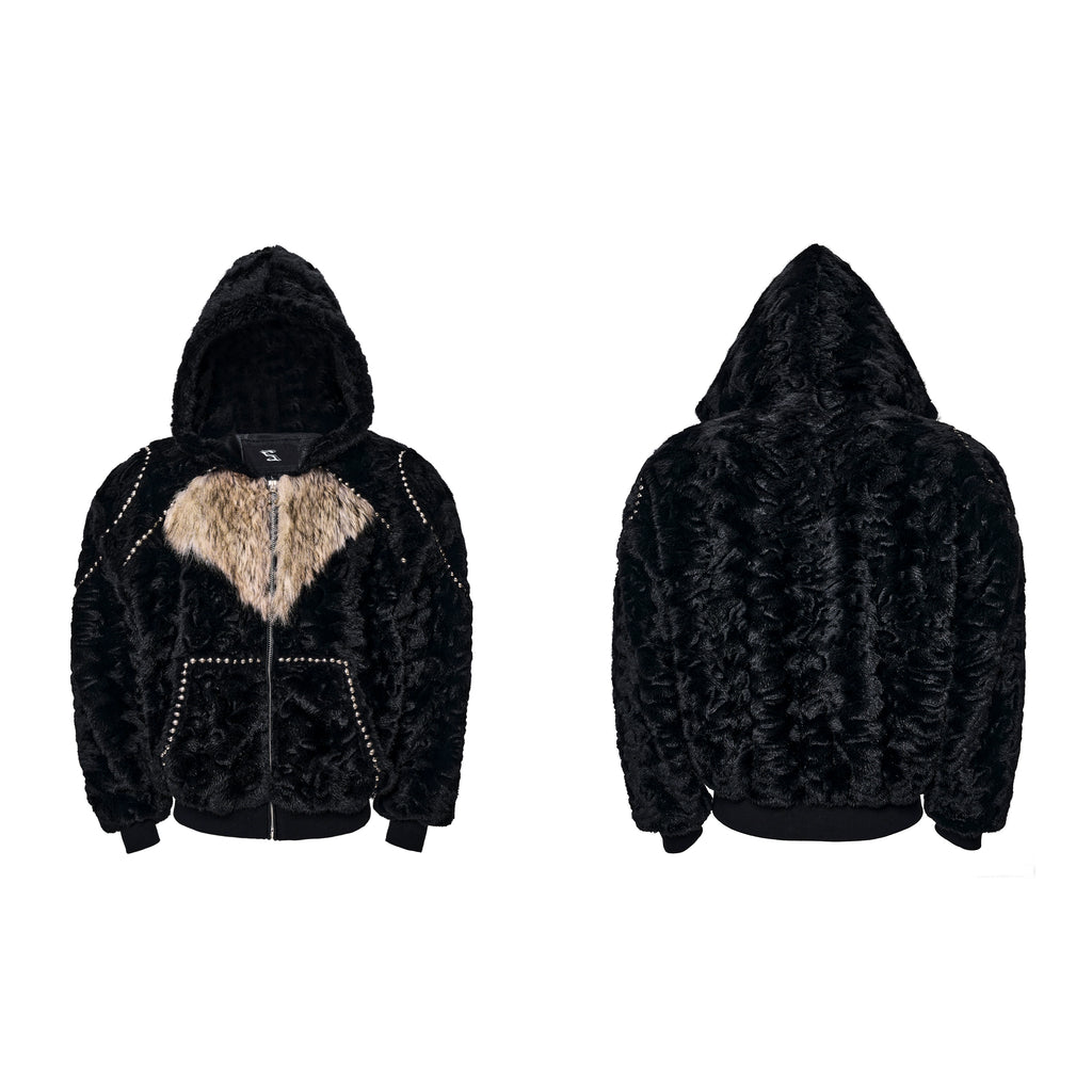 【25s Nov.】Contrast Color Heart Thickened Faux Mink Hooded Jacket / Pants
